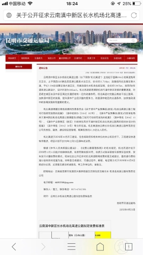 掌上春城訊 9月25日,昆明市交通運輸局發布了《關于公開征求云南滇中新區長水機場北高速公路聯網收費意見建議的公告》(下稱《公告》),《公告》表示長水機場北高速公路項目計劃將于2019年12月31日通車試運營。