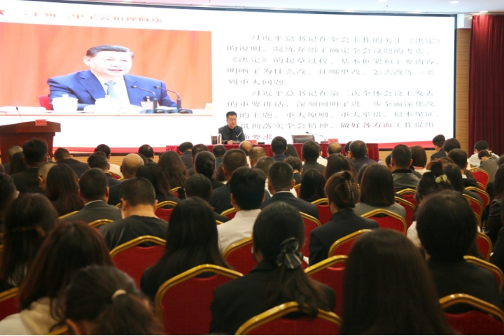 宣講會上,馬東山緊扣深入學習領會二十屆三中全會精神、省委十一屆六次全會精神及市委十二屆七次全會精神,全面準確理解《決定》提出的進一步全面深化改革重大舉措和《決定》關于國資國企進一步全面深化改革的有關要求等方面,作了全面系統的宣講和深入闡釋,引導全體黨員干部職工學深細悟全會精神,準確把握精髓要義,抓好全會精神的貫徹落實,全力抓實抓細改革發展工作,推動集團高質量發展實現新成效。