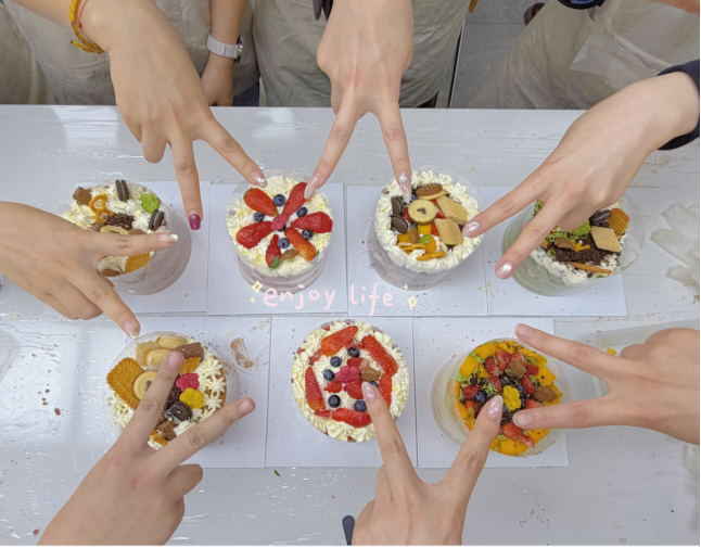 活動(dòng)現(xiàn)場(chǎng),專業(yè)烘焙老師講解了蛋糕裱花與水果搭配的制作技巧。大家紛紛動(dòng)手實(shí)操,從涂抹奶油到擺放水果,從勾勒花紋到創(chuàng)意點(diǎn)綴,每一個(gè)環(huán)節(jié)都融入了專注與巧思。在輕松愉悅的氛圍中,大家相互交流心得、分享創(chuàng)意靈感,不僅收獲了親手制作的甜品,更在協(xié)作中增進(jìn)了情誼,在創(chuàng)造中收獲了快樂(lè)。