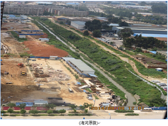 海河起點K0+660,終點為K2+420,整治長度1.76公里。施工內容主要包括清淤、截污管道、河堤修筑等。防洪斷面主要根據方旺片區城市開發系統需求,在原河道基礎上局部改線,河岸兩側各2-6米范圍為紅線范圍,河底寬2m-7....